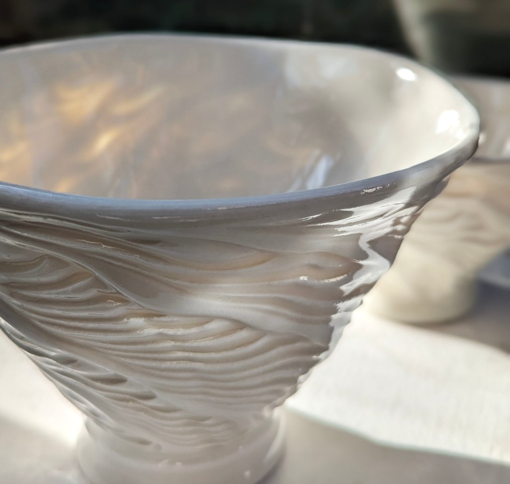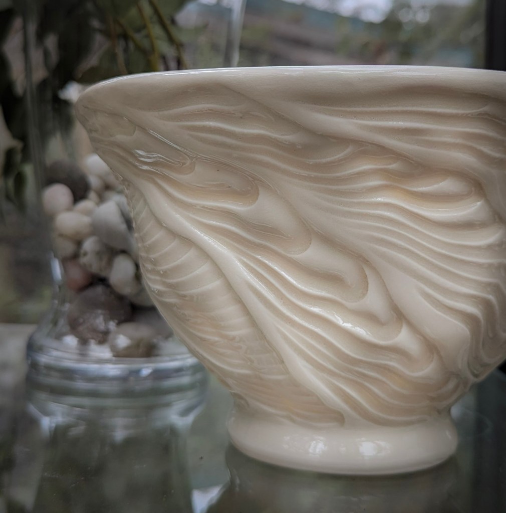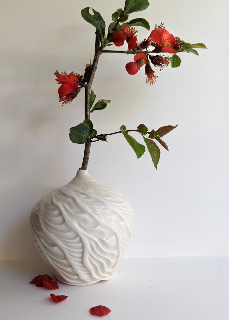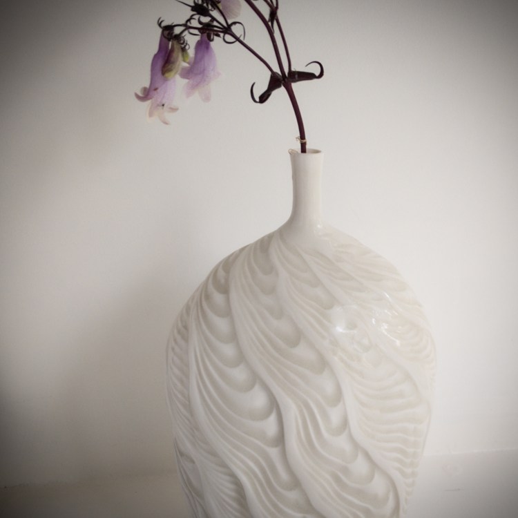 My biomorphic carved porcelain has been a staple of my studio practice. I free-hand carve this English Grolleg porcelain in myriad forms: vases, bowls, teapots, and more. This work has won awards and has been selected for international museum collections.