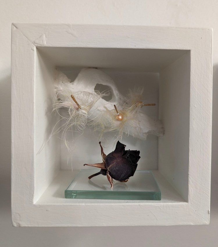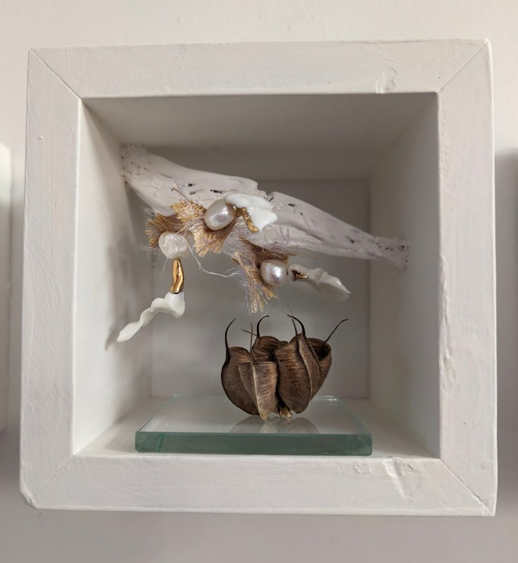 This collection of mixed-media objects extended from my graduate work in Integrated Studies in 2016. The objects were contemplative studies of elements collected from my home environment, which I then integrated into tableaus of meaning and resonance.